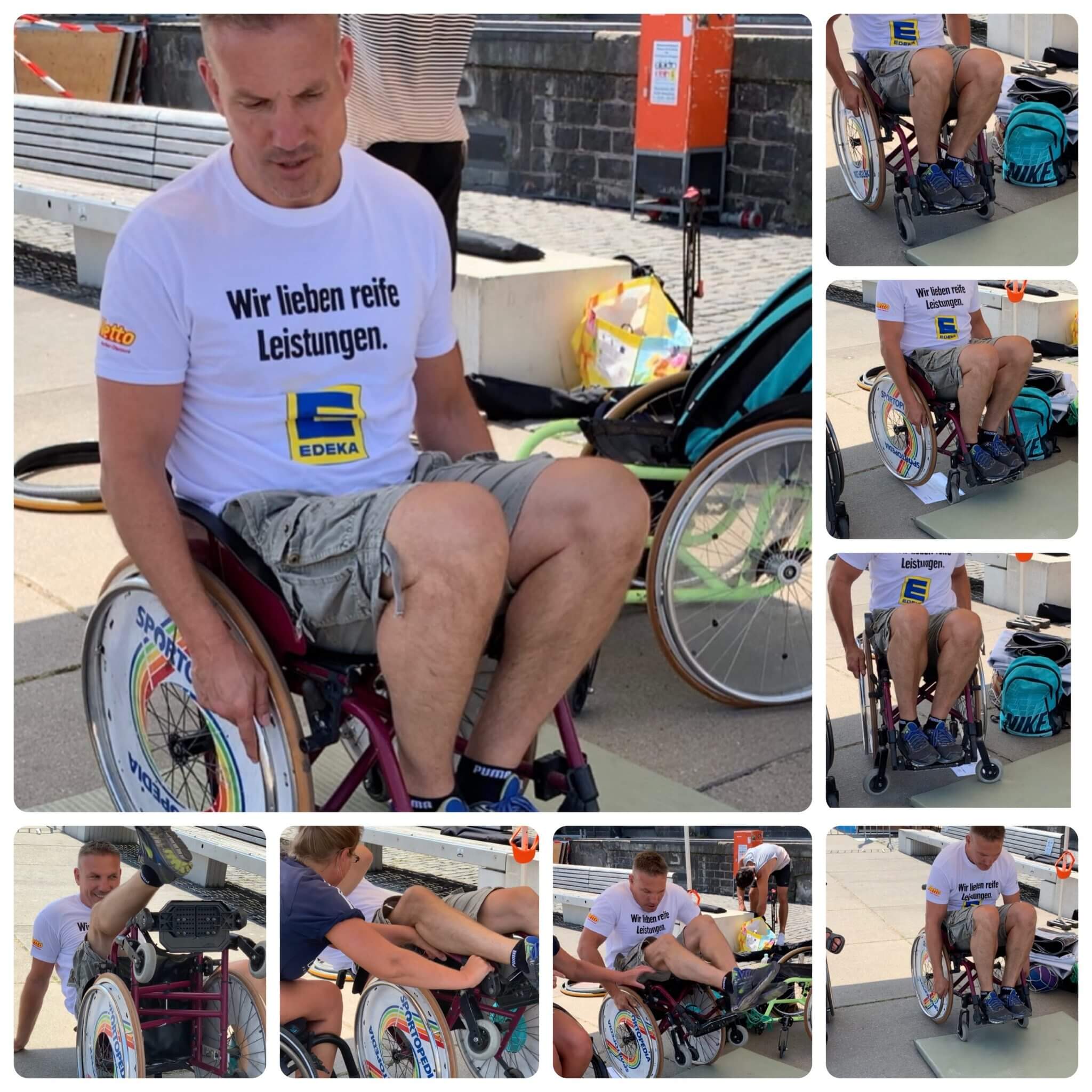 Wir haben uns dort der Herausforderung einen Hindernisparcour auf einem Rollstuhl zu bewältigen, gestellt. Und wie auf den Bildern ersichtlich, können für einen ungeübten Fahrer wie mich, bereits kleinste Hindernisse zum Verhängnis werden. Unser Austausch mit den vor Ort anwesenden Rollstuhlfahrern, bei dessem Inhalt wir unseren Focus auf deren Alltagsprobleme im Straßenverkehr richteten, war sehr interessant, aber zugleich auch ebenso erschreckend.